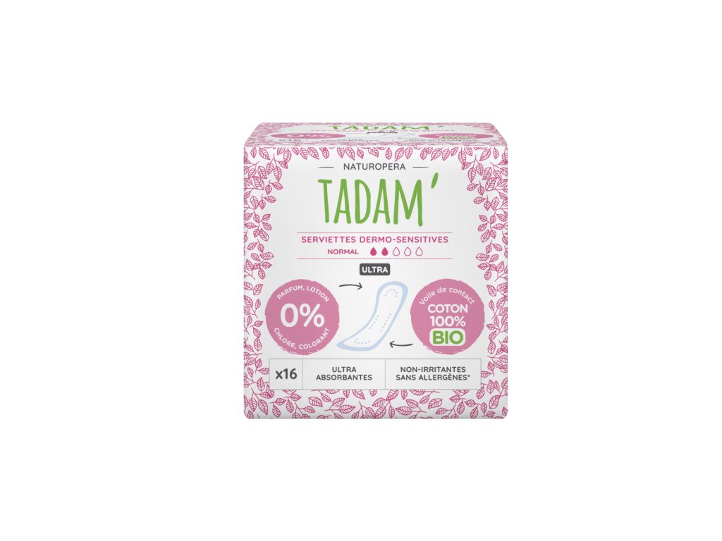 Absorbante TADAM Dermo Sensitive din bumbac organic, normale, 16 buc. Protecție delicată și confortabilă