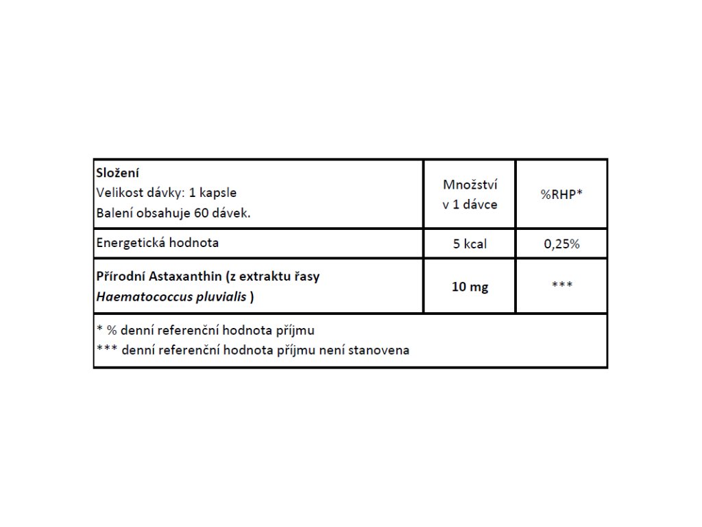 Astaxantina naturala (din extract de alge Haematococcus pluvialis ) | 10 mg | *** |