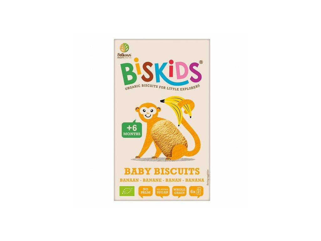 BISkids Biscuiți integrali BIO pentru copii cu banană, fără zahăr adăugat, 6M+, 120 g Cu calciu și vitamina B1