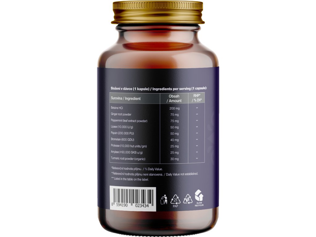 Enzimele sunt proteine specializate care se găsesc în mod natural în fiecare celulă a corpului uman. În alimentație, le găsim în principal în legume proaspete, fructe și alimente fermentate. BrainMax Digestive Magic este un amestec funcțional de enzime și plante atent alese, creat pentru cei care doresc să acorde puțină mai multă atenție digestiei lor. Compoziția practică este concepută pentru a fi un supliment excelent pentru alimentația zilnică – fie că mâncați acasă, la serviciu sau în călătorii.