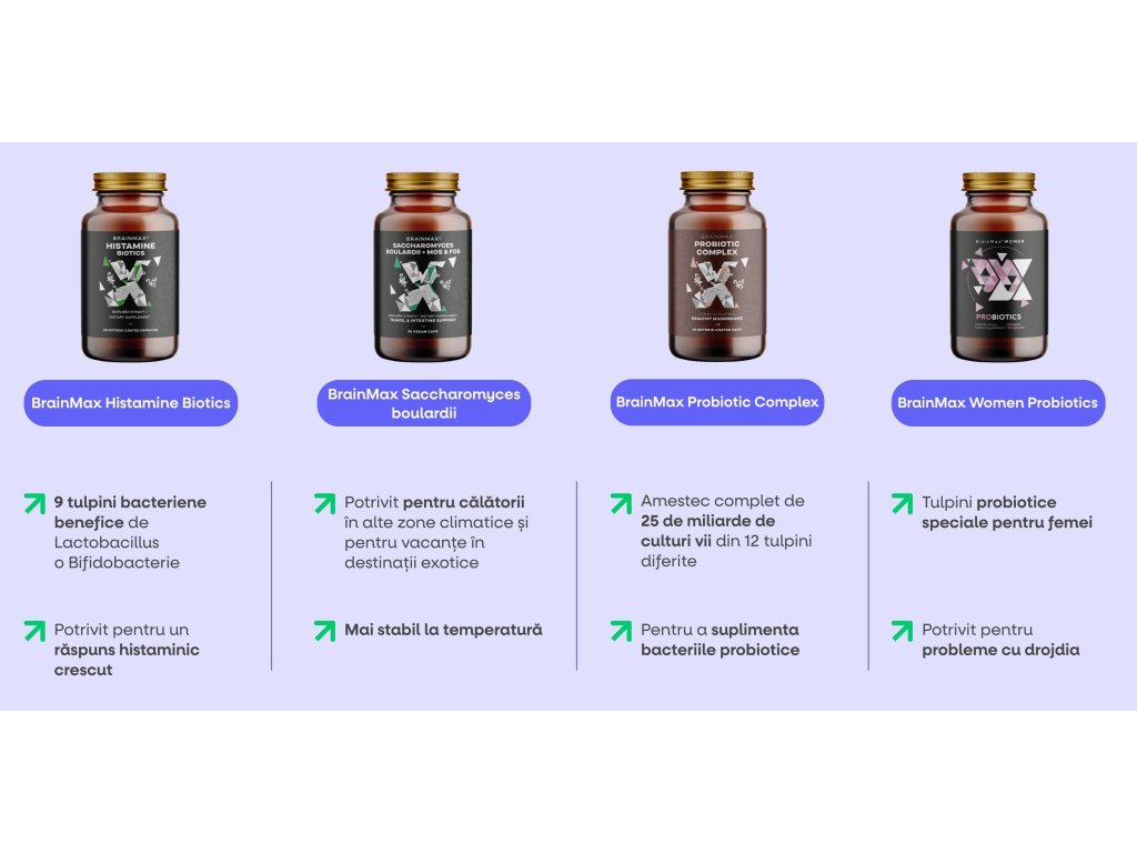 Toate tulpinile bacteriene prietenoase susțin sănătatea intestinului nostru, cu toate acestea, unele tulpini din intestin produc histamina, în timp ce altele se hrănesc cu histamina, ajutând la reglarea nivelului acesteia. BrainMax Histamine Biotics este o formulă special concepută de 8 tulpini bacteriene benefice de Lactobacillus și Bifidobacterium potrivite pentru cei cu intoleranță la histamină.