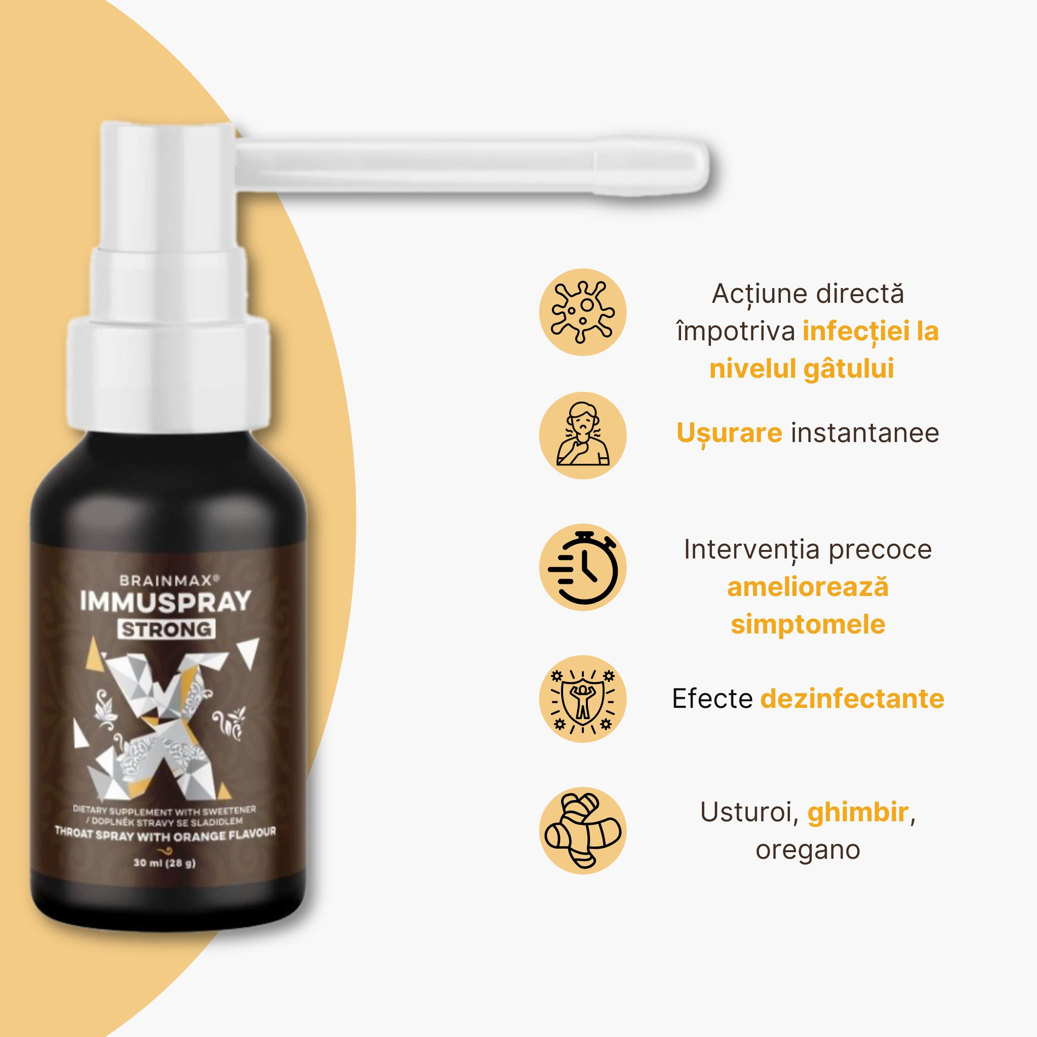 BrainMax ImmuSpray, STRONG, spray pentru susținerea sistemului imunitar, 30 ml Spray natural extrem de puternic pentru gât pentru dezinfectare și susținerea imunității, 113 doze, supliment alimentar.