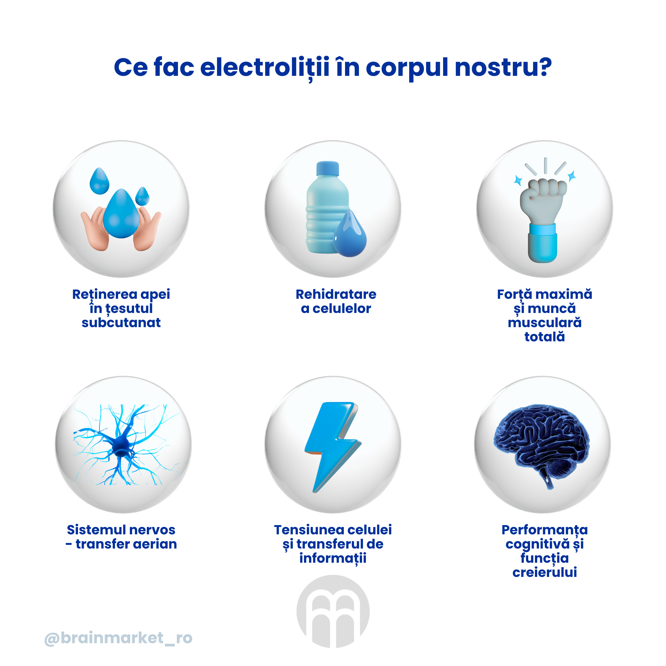 Organismul dumneavoastră este ca o mașină sport de top - pentru a funcționa bine are nevoie de combustibil premium. Electroliții sunt exact ceea ce corpul dumneavoastră necesită pentru a funcționa optim în fiecare zi. Electroliții sunt forme ionizate ale mineralelor - în special clor, sodiu, potasiu și magneziu - care sunt motorul corpului dumneavoastră. Zi de zi, pas cu pas, cu fiecare picătură de transpirație, consumați aceste minerale vitale. În timpul sportului, la muncă, chiar și în timpul somnului. BrainMax Liquid Sport Electrolytes vă oferă exact ceea ce dorește corpul dumneavoastră - sodiu, magneziu, clor și potasiu în cea mai pură formă naturală, așa cum au fost create de natură cu milioane de ani în urmă.