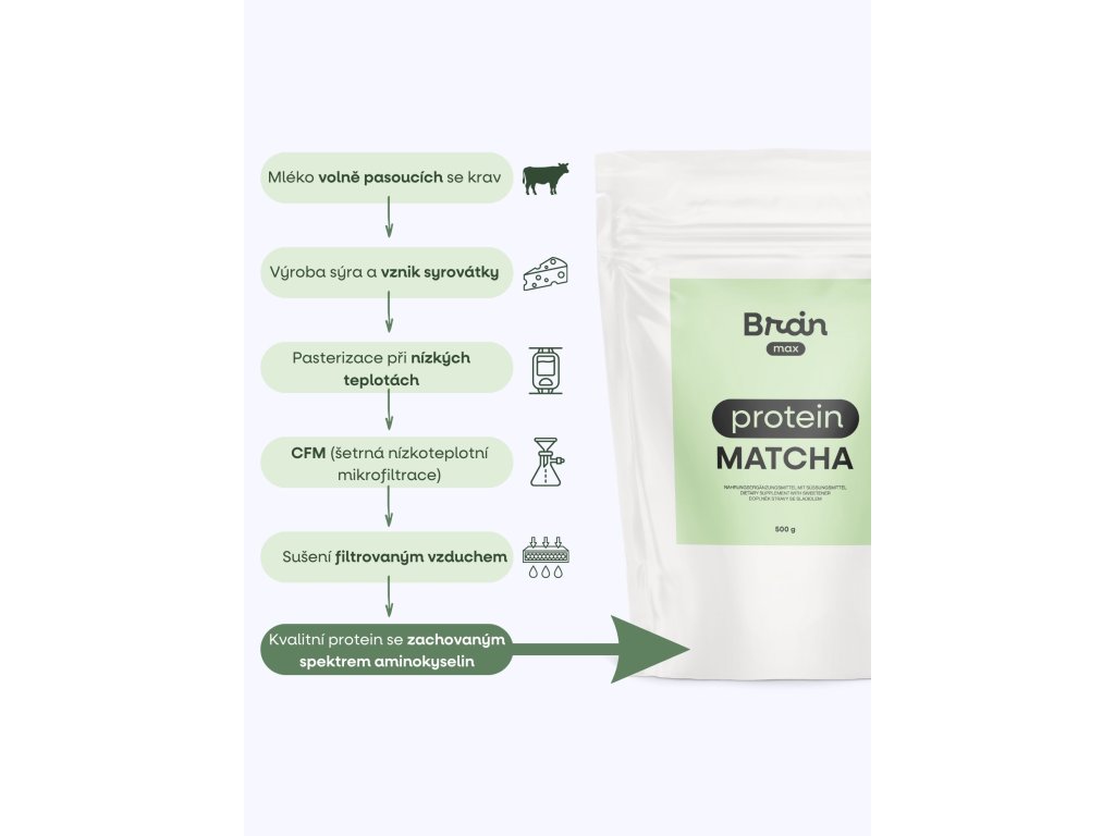 BrainMax Matcha Protein, 500 g Grass-fed protein cu aromă de matcha latte, 14 porții, supliment alimentar