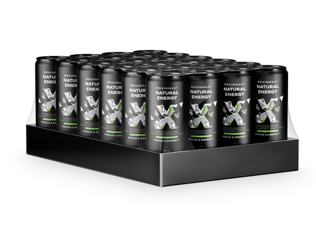 BrainMax Natural Energy, Măr și lime, 24×250 ml Băutură energizantă carbogazoasă, susținerea performanței mentale și fizice, supliment alimentar, 250 ml