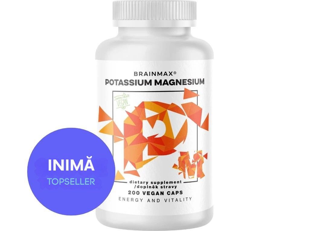 BrainMax Potasiu Magneziu, Citrate de potasiu + Malat de magneziu, 200 capsule vegetale 100 mg de potasiu elementar și 60 mg de magneziu elementar pe doză, supliment alimentar