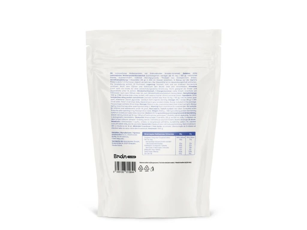 Proteinele fără lactoză BrainMax sunt compuse din 93% concentrat proteic din zer, care oferă un conținut excepțional de ridicat de proteine și o digestibilitate excelentă. Datorită acestui conținut mare de proteine și compoziției pure fără ingrediente inutile, conține 23 g de proteine per porție. Este îndulcit cu stevie și aromatizat cu arome naturale. Fără îndulcitori artificiali, umpluturi și conservanți. Rezultatul este un proteină ușoară, nutritivă și gustoasă, pe care corpul o poate folosi cu ușurință.