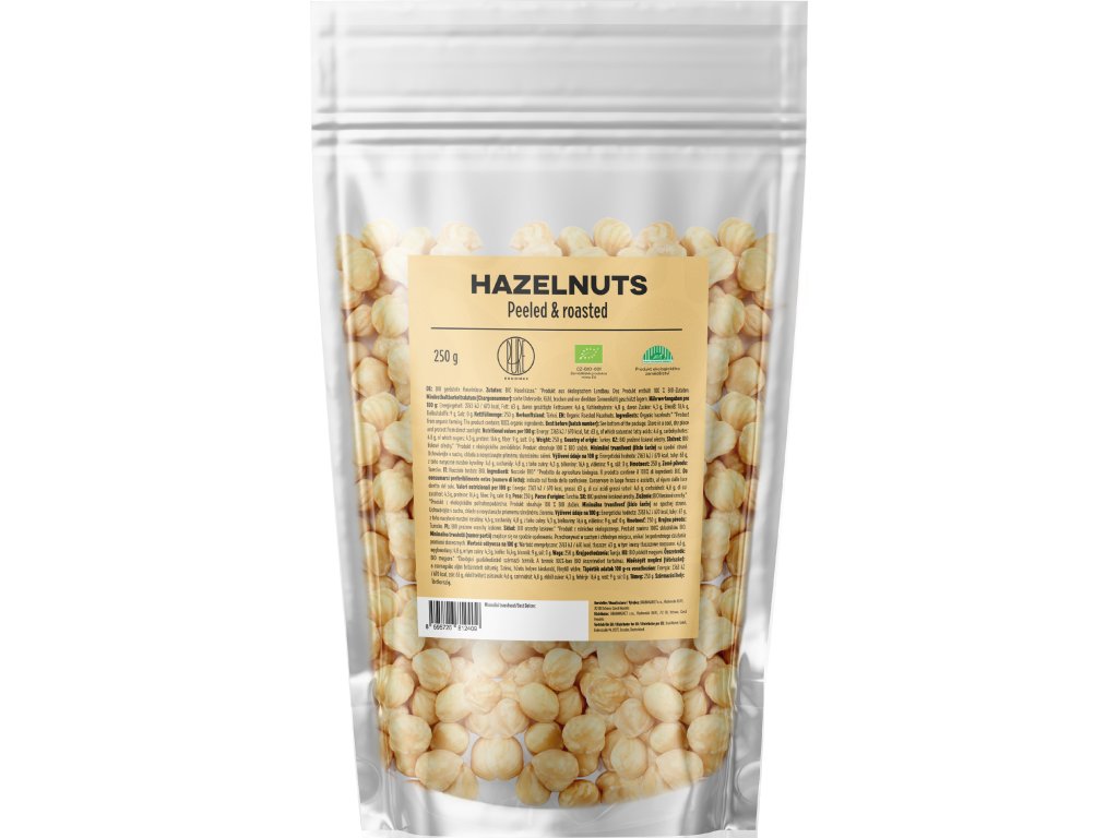 Aceste alune de pădure (miez de alune) provin din agricultură ecologică și reprezintă o calitate premium fără compromisuri. Sunt decojite (peeled), adică lipsite complet de coajă și de pelicula fină maro și apoi prăjite delicat, ceea ce le conferă un gust delicat, ușor dulceag și o structură perfect curată. Rezultatul sunt alune de pădure albe, care se remarcă nu doar prin gust, ci și prin utilizarea lor universală. Fără amărăciunea peliculei, fără tonuri deranjante – doar alună de pădure pură de calitate BIO.
