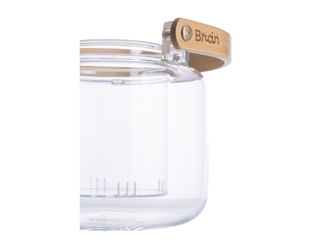 Sticla este în mod natural igienică, nu absoarbe gusturi sau mirosuri și este ideală pentru utilizarea zilnică. Designul minimalist cu logo-ul Brain este doar cireașa de pe tort. Totuși, nu este vorba doar de estetica produsului, datorită designului complet din sticlă aveți un control vizual clar asupra ceaiului sau plantelor infuzate. Întreținerea este, de asemenea, foarte ușoară, deoarece nu trebuie să vă temeți de depuneri sau mirosuri.