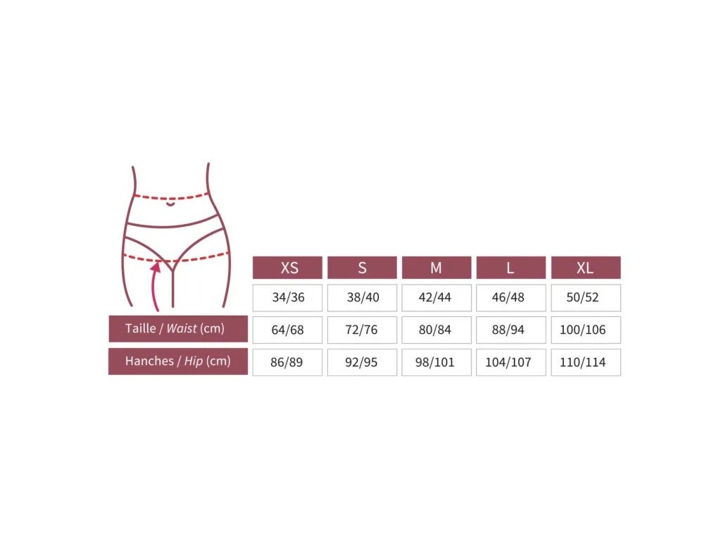 Croiala chiloților cu talia ridicată garantează un confort ridicat atunci când sunt purtate în timpul menstruației. Poti alege dintre marimile XS - XL. Compoziția chiloților menstruali include un strat absorbant din plasă tehnică care reține sângele și mirosul .