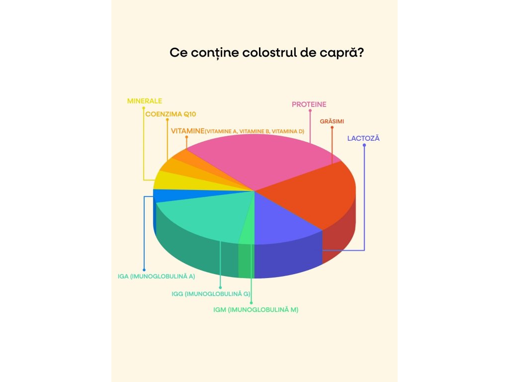 Colostrul este produs în cantități extrem de limitate și conține toate componentele cheie pe care natura le-a creat pentru începutul unei noi vieți. Se caracterizează prin complexitate, care nu poate fi imitată artificial, și o compoziție unică determinată de însăși biologia caprelor.