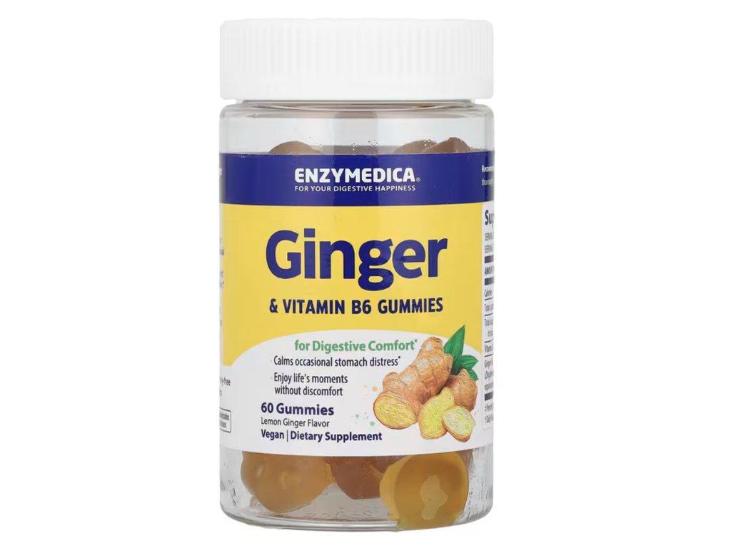 Enzymedica Gumii de ghimbir și vitamina B6, ghimbir cu vitamina B6, 60 de gumii Supliment alimentar