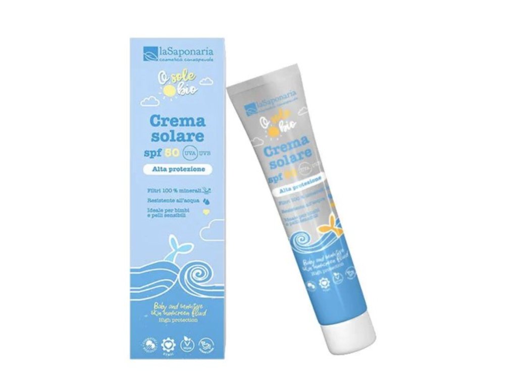 Crema de protecție solară laSaponaria SPF 50 este o alegere ideală nu doar pentru copii, ci și pentru pielea sensibilă predispusă la arsuri solare. Această cremă de protecție solară ultrafină protejează împotriva radiațiilor UVA și UVB datorită filtrelor minerale naturale care stau la baza protecției. Ingredientele organice de înaltă calitate garantează siguranța chiar și pentru cea mai sensibilă piele.
