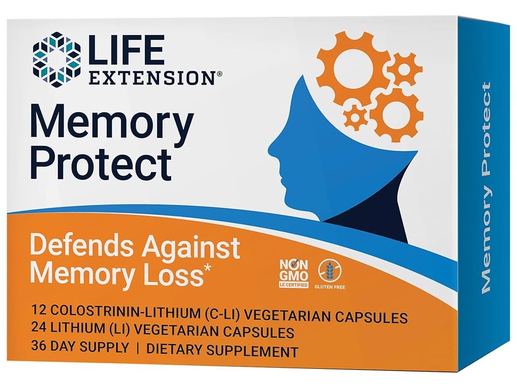 Factorii normali de îmbătrânire a creierului pot afecta memoria, sănătatea creierului și funcția cognitivă . Memory Protect, formula noastră avansată pentru susținerea memoriei și a funcțiilor cognitive, conține doze mici de litiu și colostrinină , doi nutrienți care ajută la susținerea sănătății creierului și a funcției cognitive .