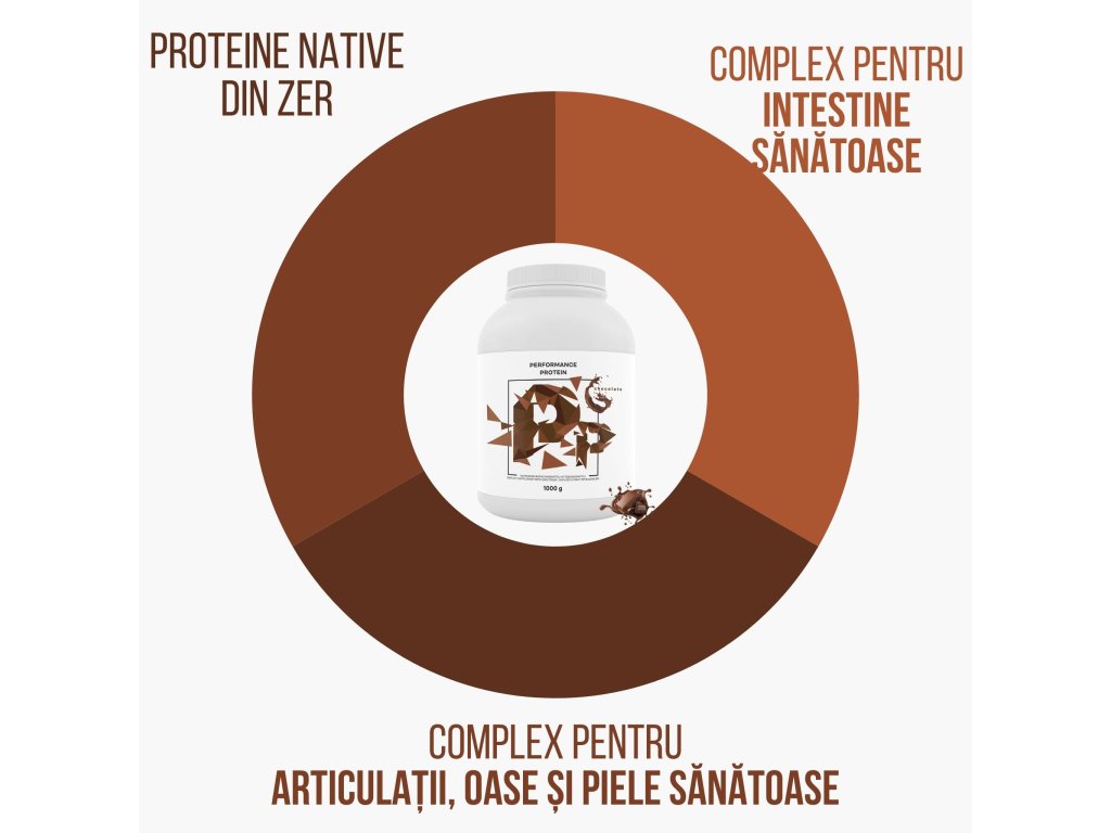 Performance Protein este mai mult decât o proteină obișnuită. Este o combinație bine gândită de ingrediente care, pe lângă proteina nativă din zer, conține și colostru de vacă și colagen hidrolizat de la vaci hrănite cu iarbă. Împreună, acestea formează o proteină ce va asigura nu doar suplimentarea cu proteine din cea mai bună sursă, ci și un sprijin complet pentru sănătate și vitalitate. Compoziția sa unică îl face o alegere ideală pentru cei care caută calitate și eficiență într-un singur produs. Indiferent dacă ești atlet, o persoană activă sau pur și simplu vrei să-ți menții sănătatea și vitalitatea, Performance Protein este cea mai bună alegere.
