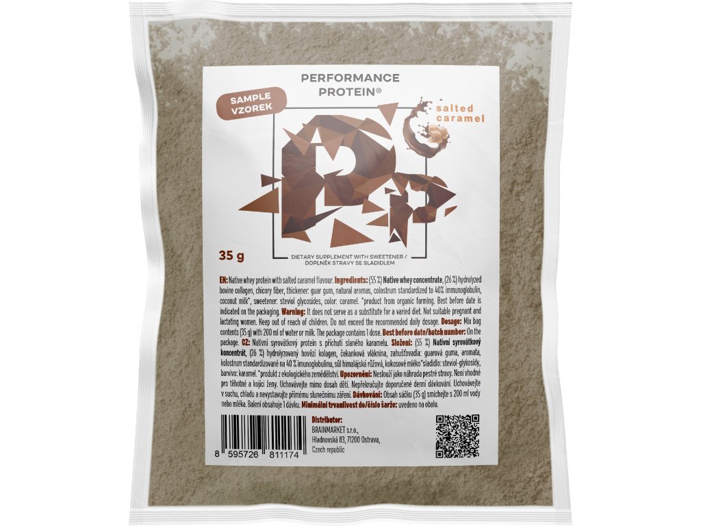 Performance Protein, protein de zer nativ, caramel sărat, 35 g, EȘANTION Protein de zer nativ cu colostru și colagen, supliment alimentar