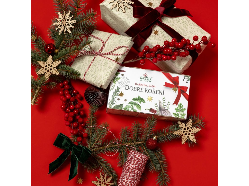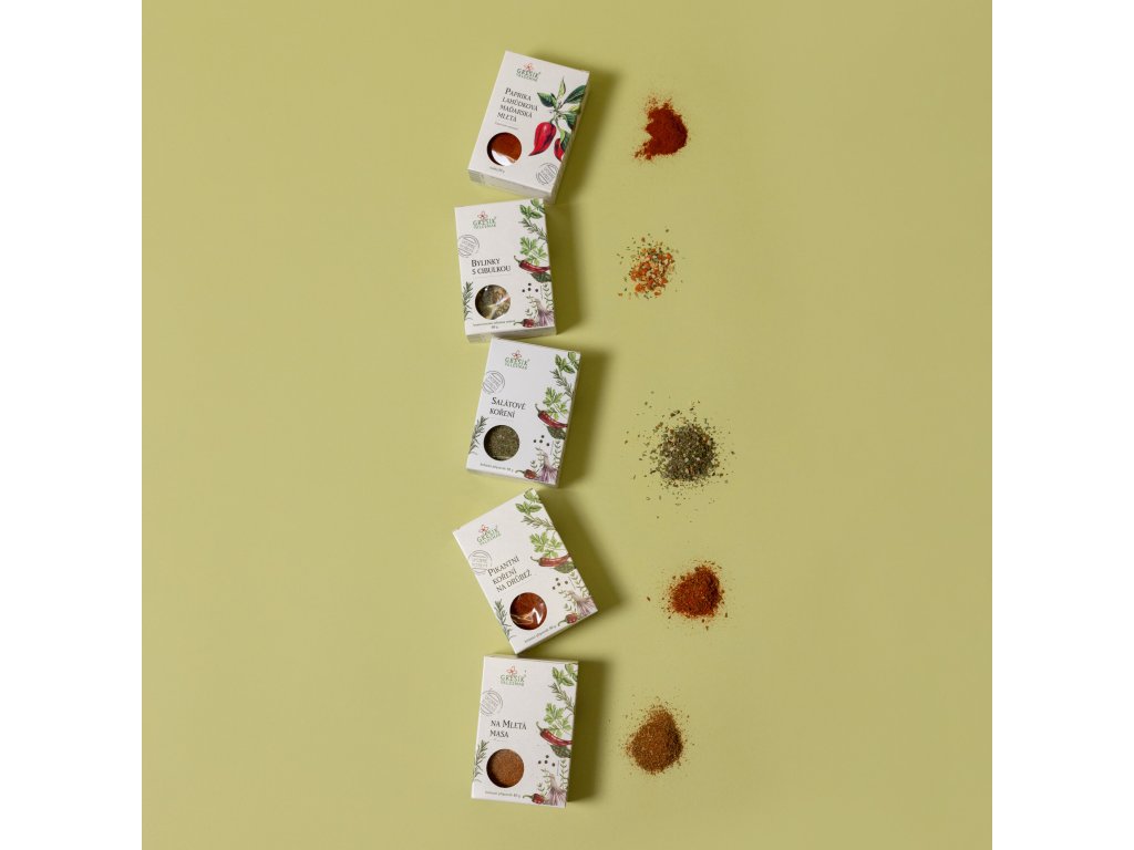 Set cadou Grešík Condimente bune Casetă cu cinci condimente selectate pentru supe, carne, carne de pasăre și salate