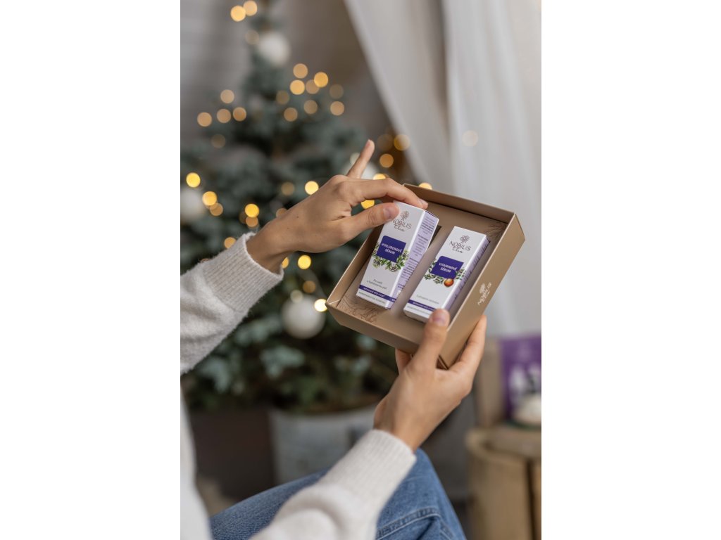 Comorile din acest set cadou vor oferi o nutriție completă și o piele frumoasă și atemporală pentru femeile de toate vârstele. Conține două seruri unice pentru piele, încărcate cu o concentrație mare de substanțe și acizi naturali inovatori. Acestea acționează în profunzime sub suprafața pielii și se adresează în mod specific nevoilor acesteia. Datorită utilizării lor, pielea va primi doza necesară de hidratare, colagenul va fi restabilit în mod natural, iar ridurile fine vor fi netezite. Ambele seruri pot fi aplicate unul peste altul, ceea ce va oferi pielii cea mai eficientă îngrijire pentru a menține un aspect tineresc pe termen lung. În plus, parfumurile delicate ale uleiurilor esențiale vor face îngrijirea pielii mai plăcută și o vor transforma într-un ritual vesel.
