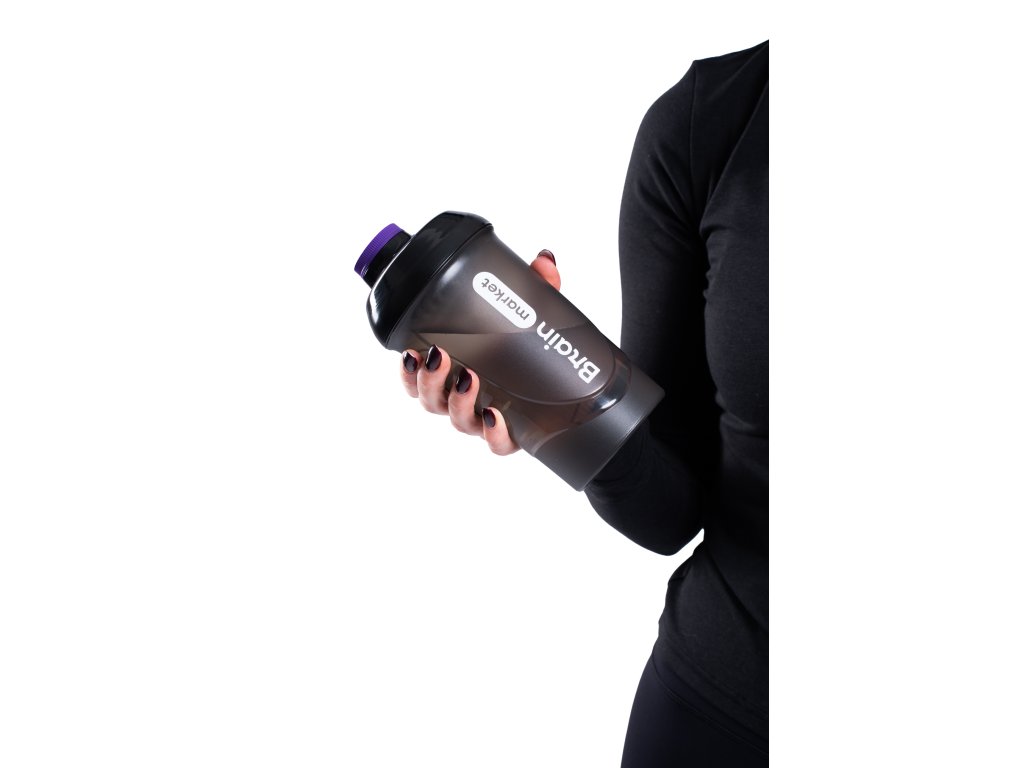 Shaker BrainMarket cu un volum de 600 ml este fabricat din plastic de înaltă calitate, sigur pentru sănătate, fără BPA, care îndeplinește standardele actuale pentru păstrarea și consumul în siguranță al băuturilor. Shakerul de culoare neagră este completat de un capac mov cu filet de siguranță, care asigură etanșeitatea chiar și în timpul amestecării dinamice. Plasa interioară previne formarea cocoloașelor. Pe ambele părți este echipat cu un logo proeminent BrainMarket și este pe deplin compatibil atât cu băuturile proteice, cât și cu cele vegetale și funcționale.