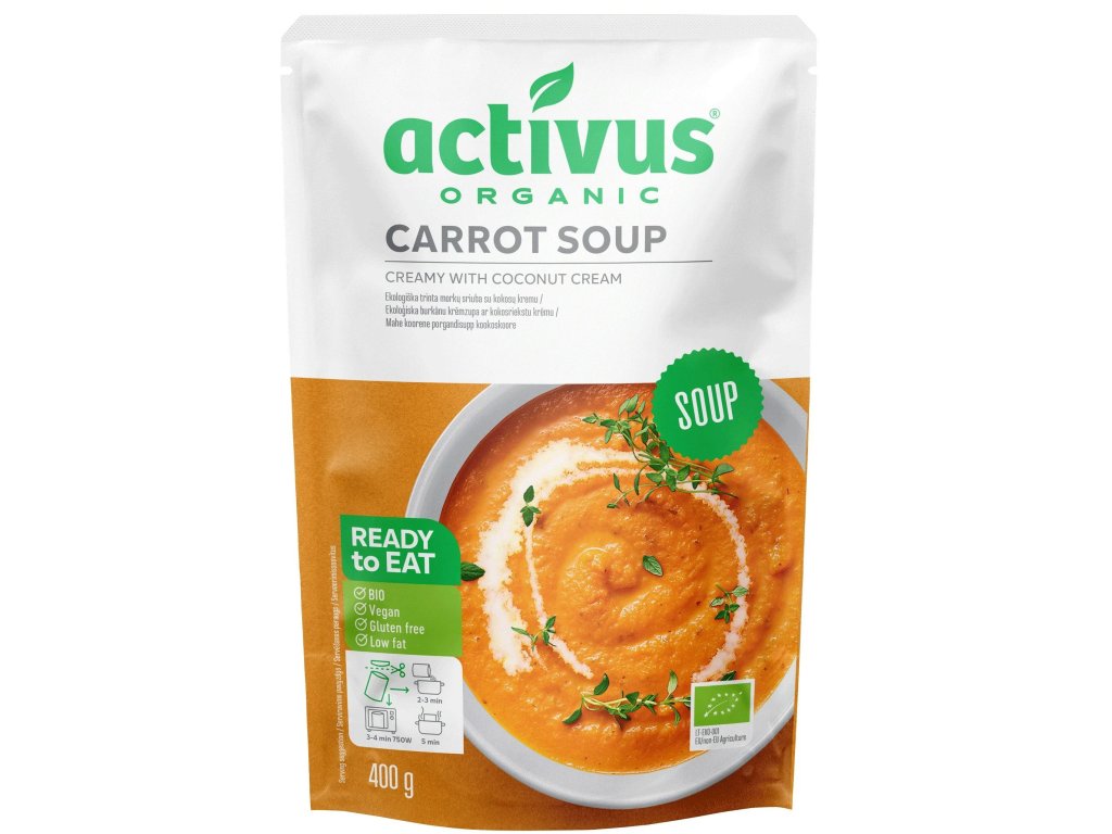 Supă cremoasă de morcovi Activus, 400 g Supă gata preparată fără conservanți