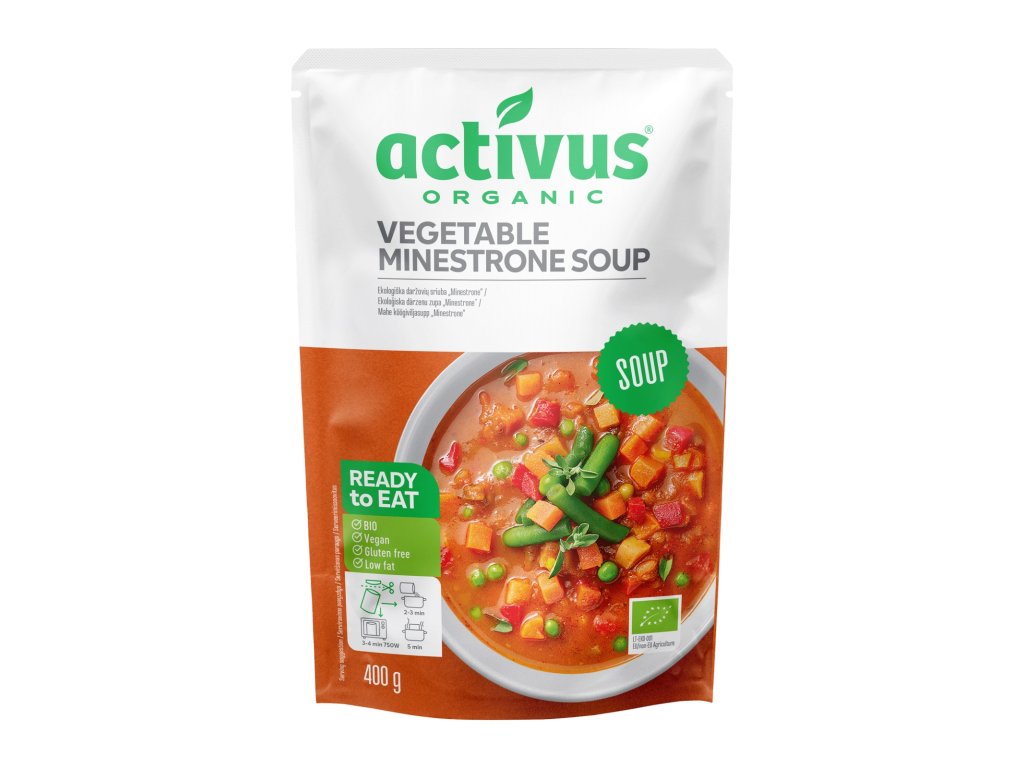 Supă minestrone de legume Activus, 400 g Supă gata preparată, plină de legume și ierburi aromatice
