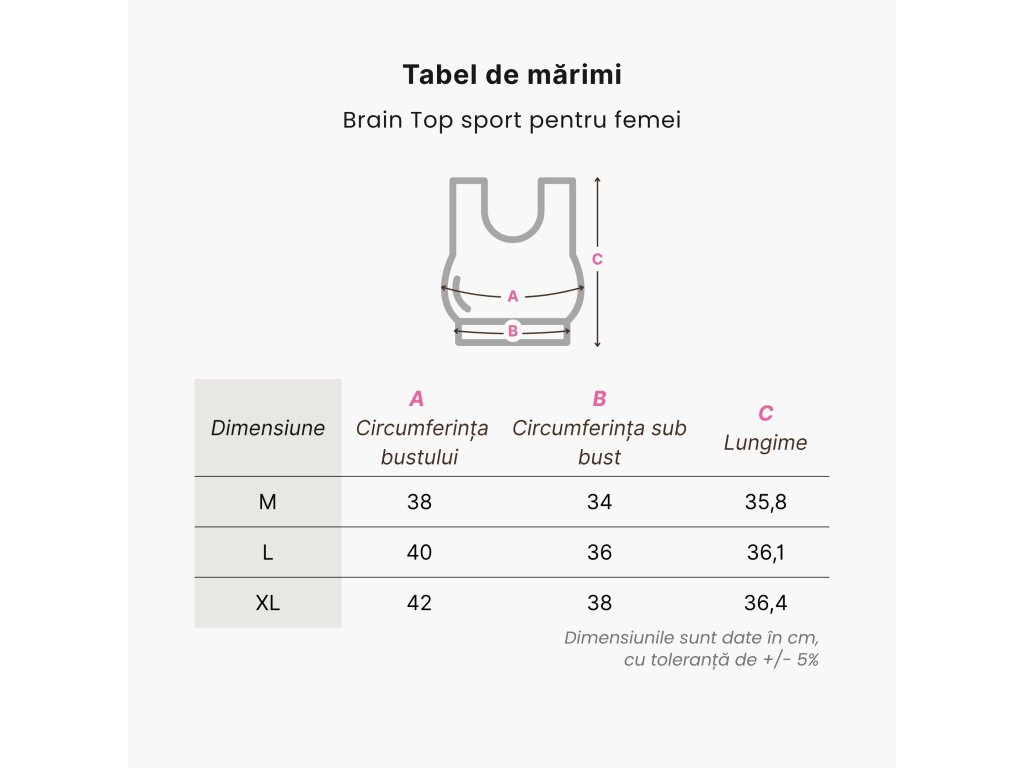 Acest top este mai mult decât un accesoriu elegant pentru sală. Banda mai lată de sub bust oferă un nivel mai ridicat de susținere pe care fiecare femeie îl va aprecia în timpul mișcărilor dinamice și al antrenamentelor de forță. Această parte inferioară mai lată ajută la o mai bună fixare a topului pe corp și oferă o senzație de încredere pe parcursul întregului antrenament.